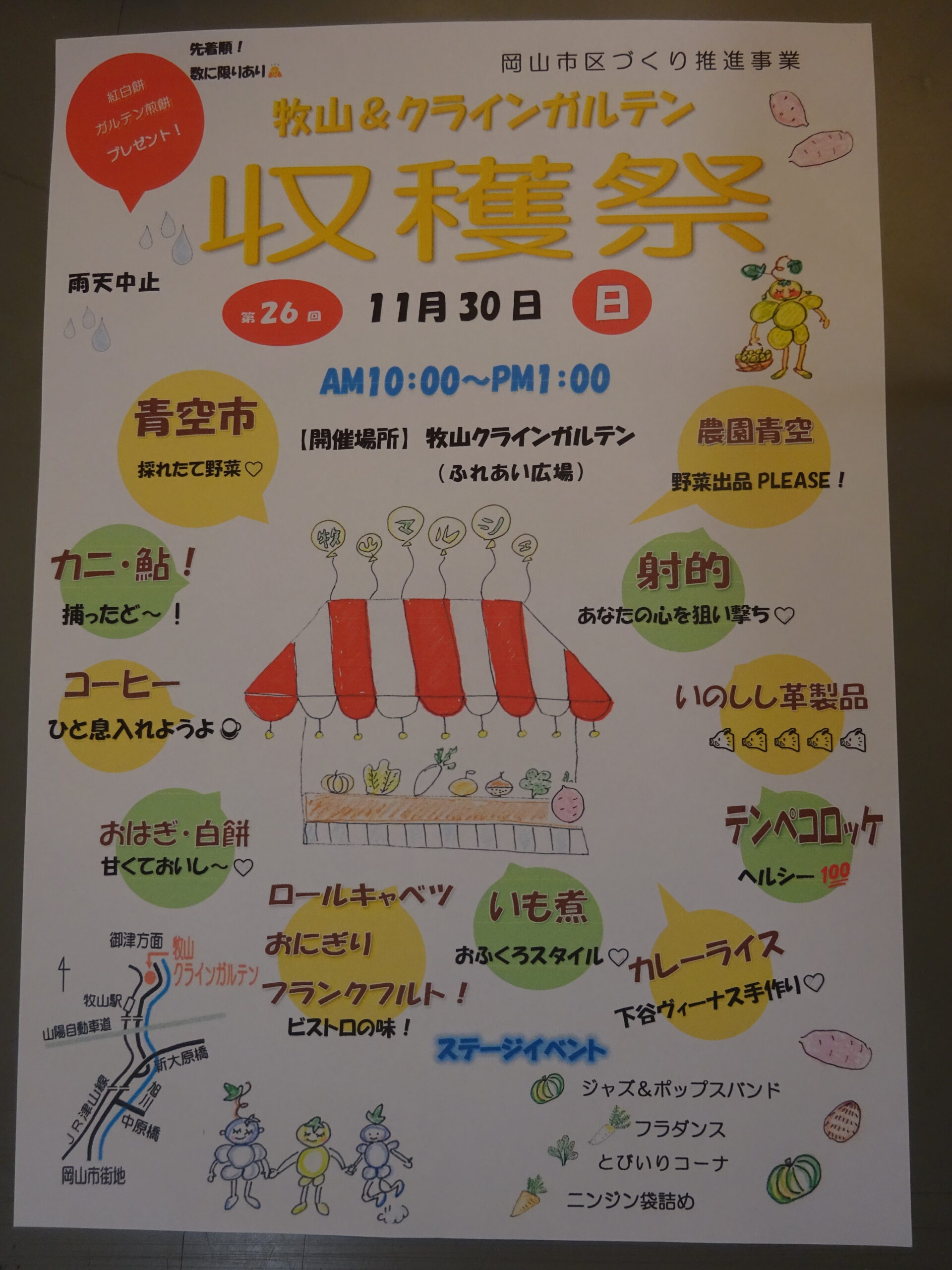 牧山&クラインガルテン収穫祭 令和7年11月30日(日)10:00~13:00 開催場所:牧山クラインガルテン(ふれあい広場) 青空市、食べ物コーナー、イベント 紅白餅。、ガルテン煎餅プレゼント(先着順、数に限りあり) 雨天中止